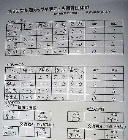 第八回首都圏カップ争奪こども囲碁団体戦 結果