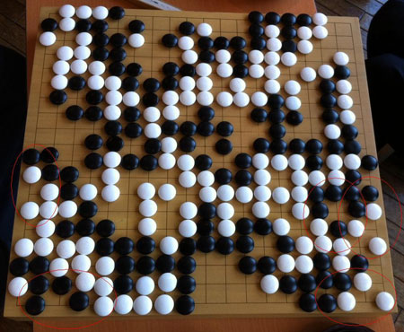五コウが発生した貴重な場面 右下に3コウ 左下に2コウ (勝敗は無勝負)